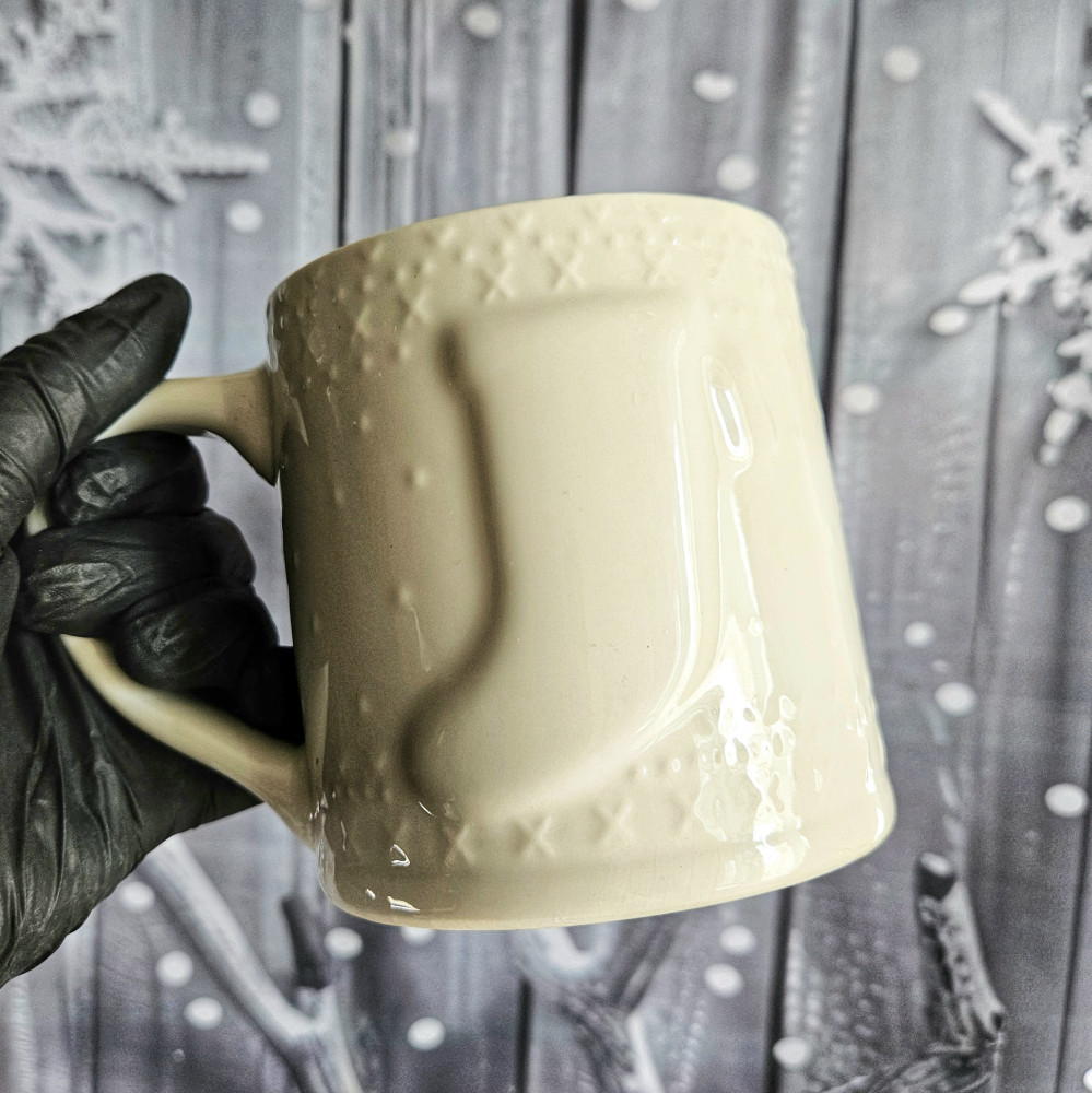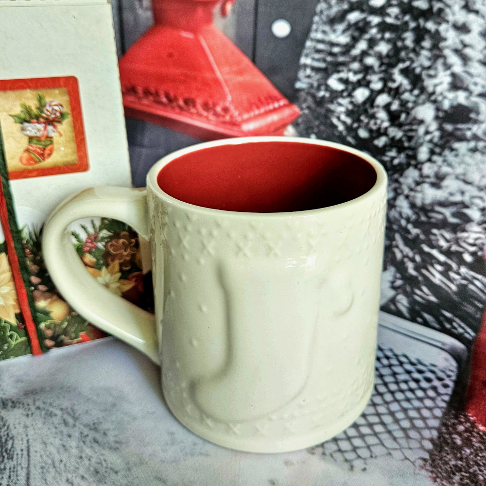 Насладитесь атмосферой праздника с новогодней кружкой «Рождественский носок» объемом 400 мл. Большая, уютная, чудесная. Изготовленная из высококачественной керамики с рельефным новогодним орнаментом, кружка отлично сохраняет температуру ваших любимых напитков — будь то горячий шоколад, глинтвейн, кофе или чай. Её большой размер и удобная ручка позволяют комфортно держать кружку в руке, а глянцевая поверхность, контрастная раскраска (снаружи-белая, внутри-красная) и новогодний декор добавляют праздничного настроения. Кружка также устойчива к многократному использованию. Благодаря индивидуальной упаковке с возможностью написать имена на стикере, она станет чудесным персональным подарком. Пусть каждый глоток приносит радость и тепло, создавая волшебство зимнего вечера. Идеально подходит для новогоднего стола и уютных домашних чаепитий.
