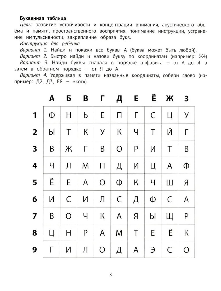 Таблицы для развития внимания, памяти и усидчивости у детей 7-9 лет | Детская нейропсихология