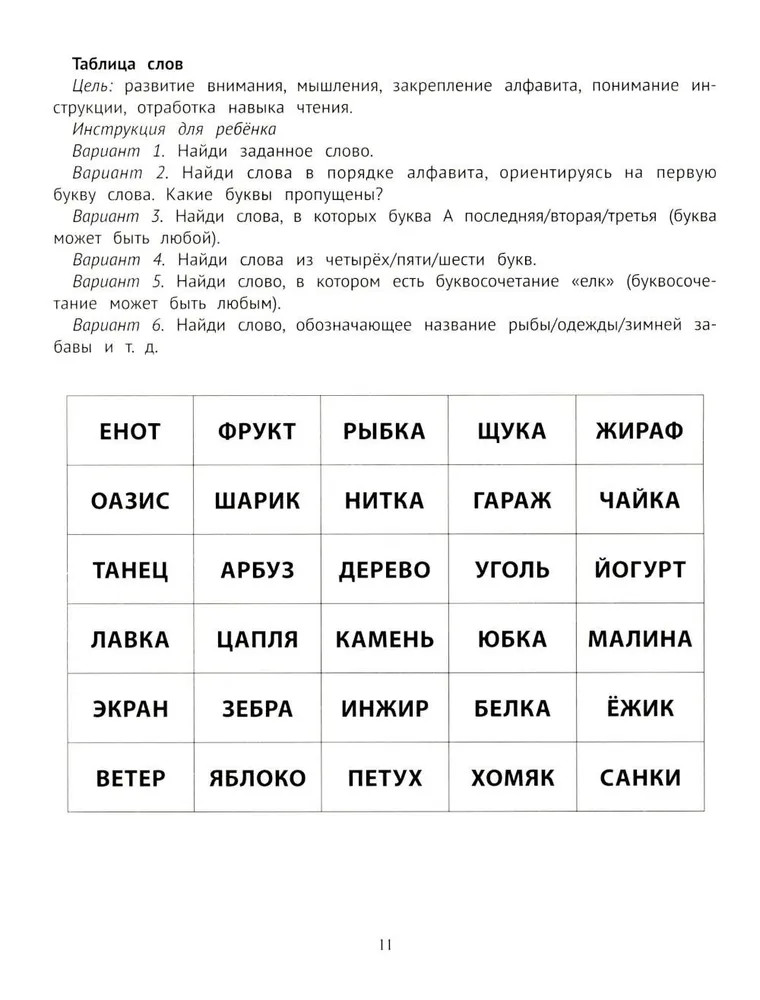 Наш тренажёр предлагает около 30 модифицированных таблиц для развития вышеуказанных навыков у детей дошкольного возраста. Помимо произвольного внимания, ребёнок улучшит навыки чтения, научится лучше понимать инструкции и логико-грамматические конструкции, закрепит образы цифр, печатных и рукописных букв. Задания рассчитаны на совместную работу взрослого и ребёнка.
