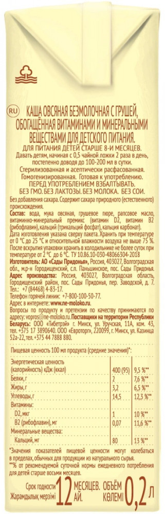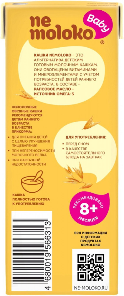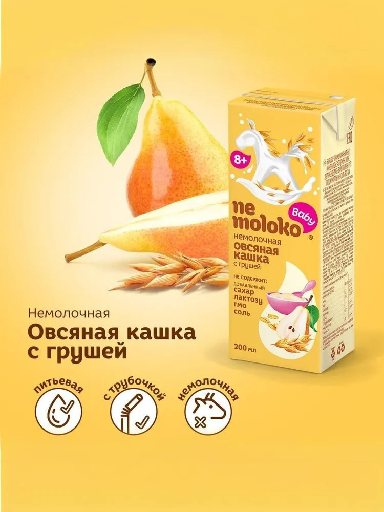 Nemoloko Кашка овсяная немолочная с грушей обогащенная витаминами и минеральными веществами