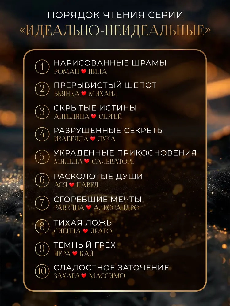 Серия: Идеально неидеальные Однажды в жизни Сергея — человека, похожего на машину для убийств, появилась та, что смогла успокоить всех его внутренних демонов. Однако Ангелина делает все, чтобы не влюбиться в мужчину, которого не должна хотеть. Но что произойдет, когда они оба раскроют свои скрытые истины? |