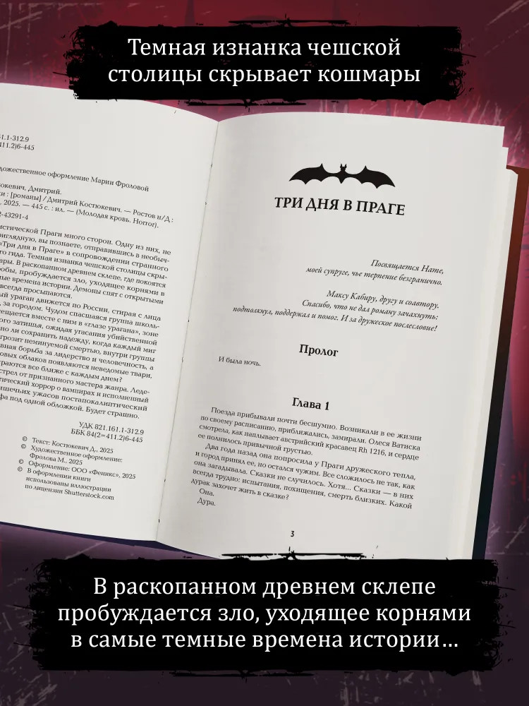 Серия: Молодая кровь. Horror ...У мистической Праги много сторон. Одну из них, не самую приглядную, вы познаете, отправившись в необычный тур «Три дня в Праге» в сопровождении странного бездомного гида. Темная изнанка чешской столицы скрывает кошмары. В раскопанном древнем склепе, где покоятся черные гробы, пробуждается зло, уходящее корнями в самые темные времена истории. Демоны спят с открытыми глазами. И всегда просыпаются. |
