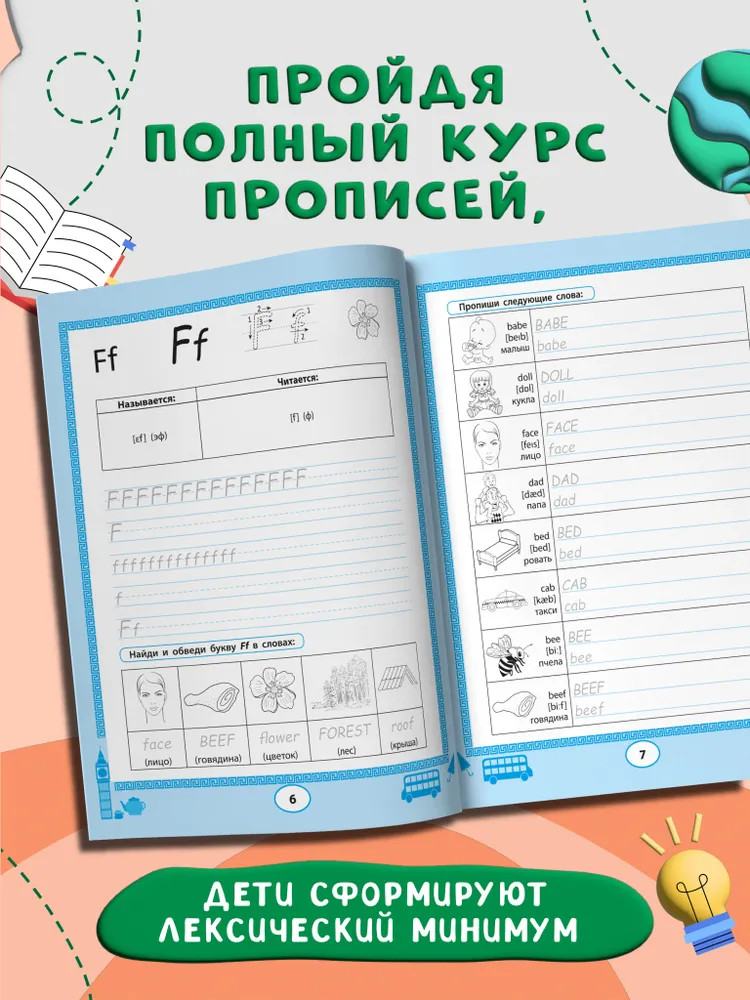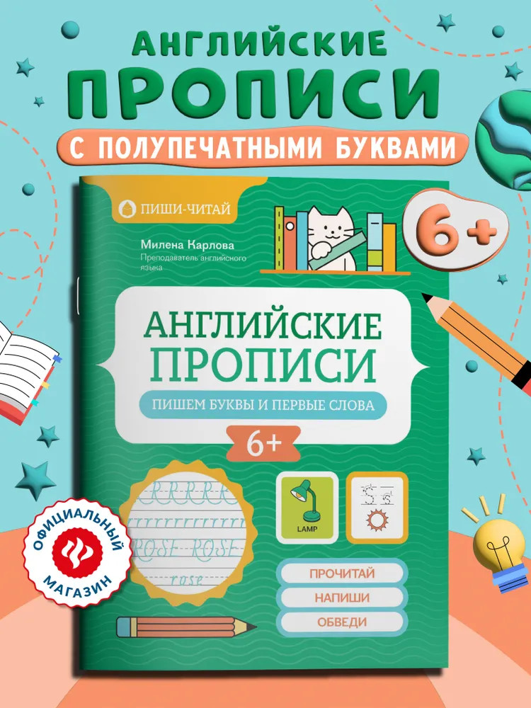 Серия: Пиши-читай При изучении английского чтение и запоминание на слух дополняются письмом, но классические прописи практически не используются, дети пишут смесью печатных и рукописных букв, поэтому мы предлагаем полупечатные буквы. В процессе написания букв дети знакомятся с английским алфавитом и первыми словами на английском языке, формируя лексический минимум. Картинки помогут в запоминании новых слов, а прописи, помимо отработки навыков написания букв, развивают моторику, внимание, память. Сборник ориентирован на младших школьников. |