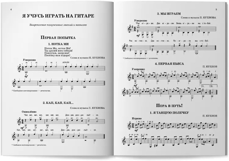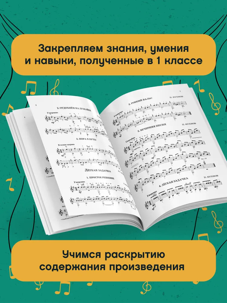 Серия: Учебные пособия для ДМШ Данный сборник является логическим продолжением сборника «Начинающему гитаристу. Пьесы, этюды, упражнения для учащихся 1-2 классов ДМШ». Пьесы, расположенные на первых страницах сборника, направлены на закрепление знаний, умений и навыков, полученных в 1 классе ДМШ. Основная цель сборника — помочь начинающему музыканту стать исполнителем. Следующая задача — научить его раскрытию содержания произведения. Простое техническое исполнение показывает только умение владеть инструментом. Эмоциональное, яркое исполнение позволяет раскрыть характер пьесы, донести до слушателя её содержание. Многие пьесы сборника имеют названия, которые помогут образно воспринять музыкальный материал. Последовательность расположения материала сборника способствует планомерной технической и художественной подготовке, творческому росту учащегося. Особенностью сборника является то, что он целиком построен на оригинальном материале: все этюды и пьесы сочинены автором специально для этого сборника и не только решают технические задачи, но и отличаются своей музыкальностью, что делает процесс обучения более результативным и интересным. Сборник предназначен для учащихся 2-х классов с пятилетним сроком обучения и для 2-3 классов с восьмилетним сроком обучения в ДМШ. |