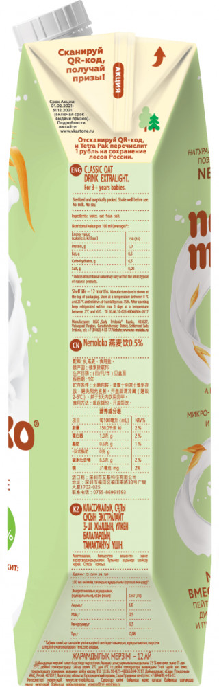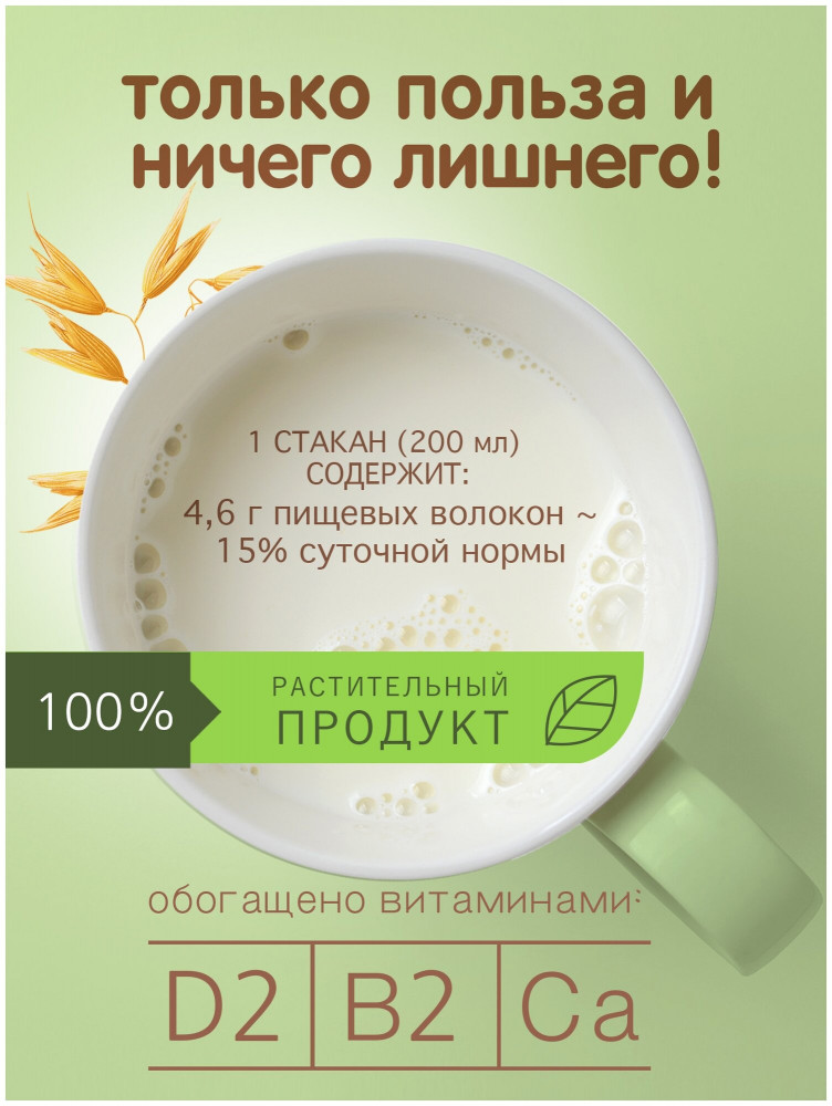 • жирность 0,5% обеспечена непосредственно жирностью самого овса. Добавленного жира в составе нет;