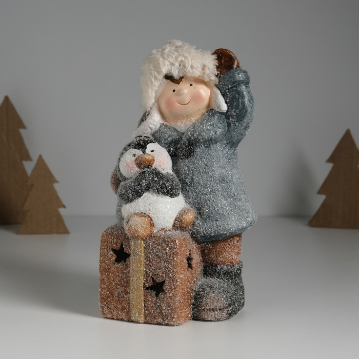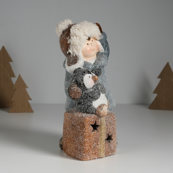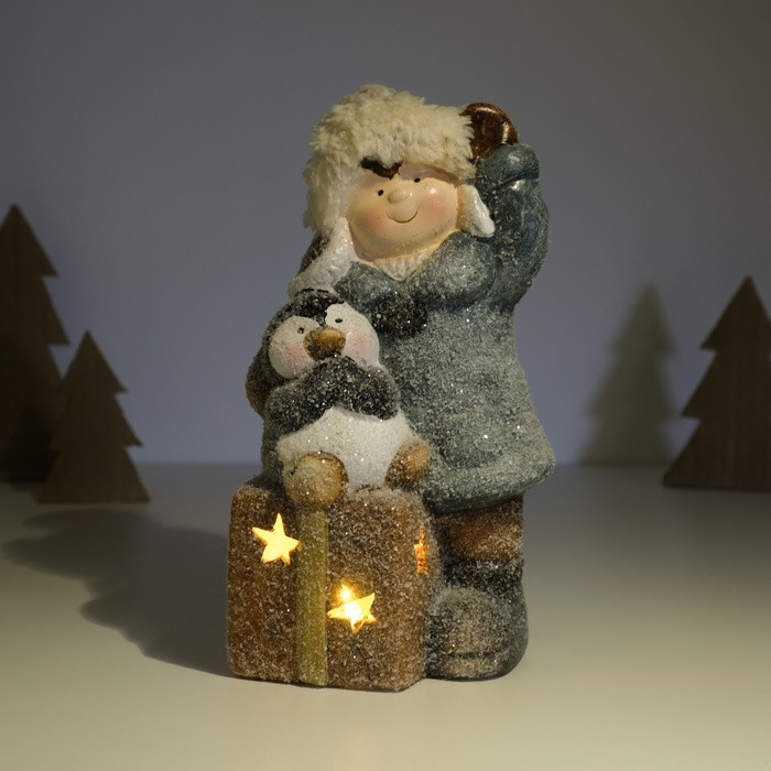 Фигурка светящаяся «Малыш в сером пальто, с пингвином на подарке»новинка -35%