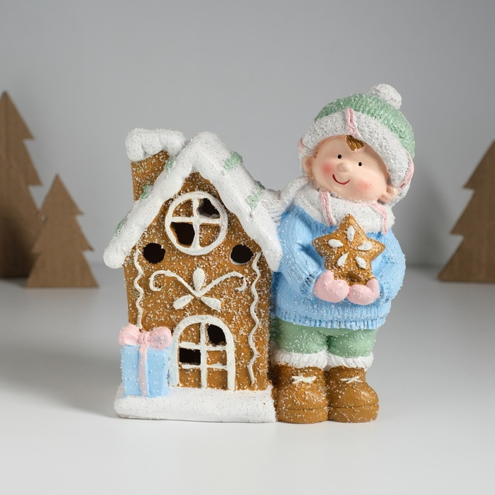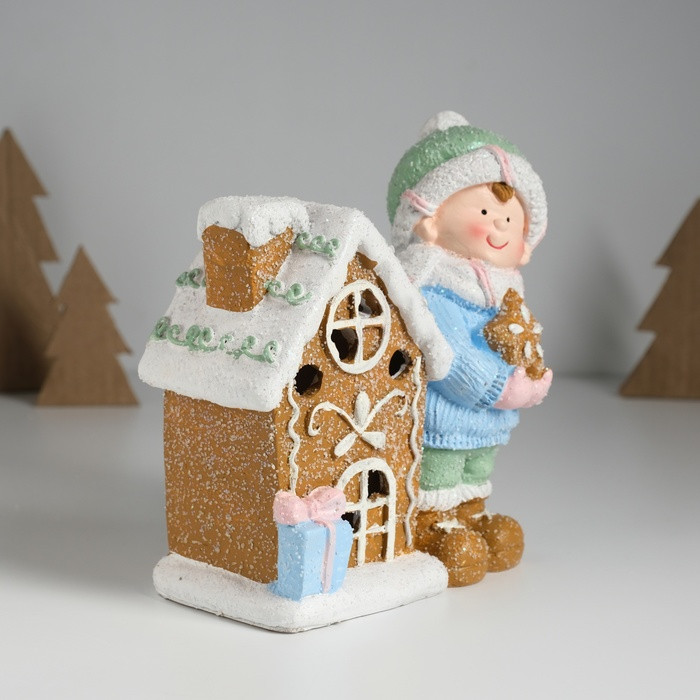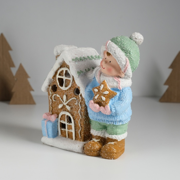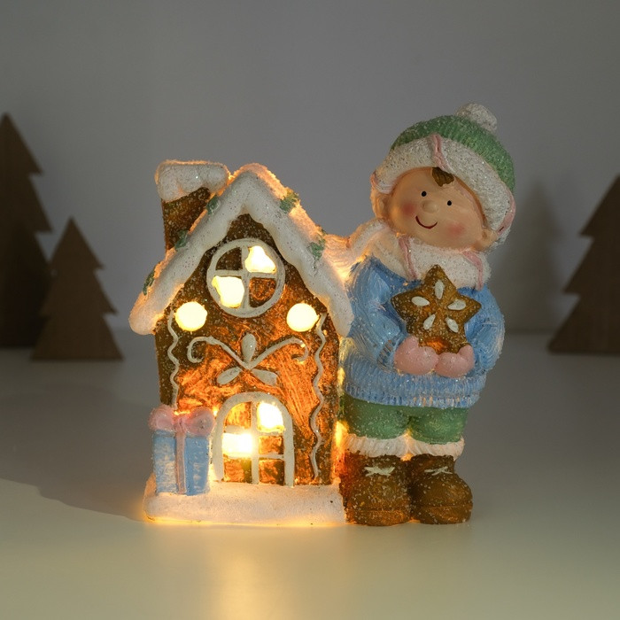 Фигурка светящаяся «Малышка в голубом свитере у пряничного домика»новинка -25%