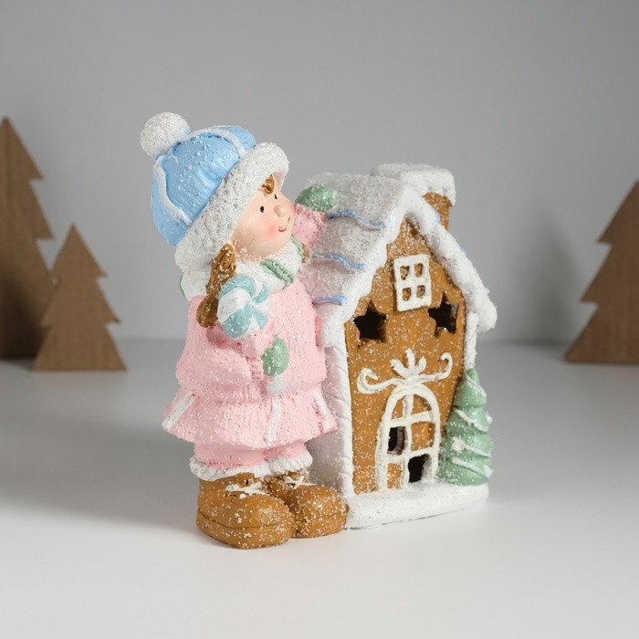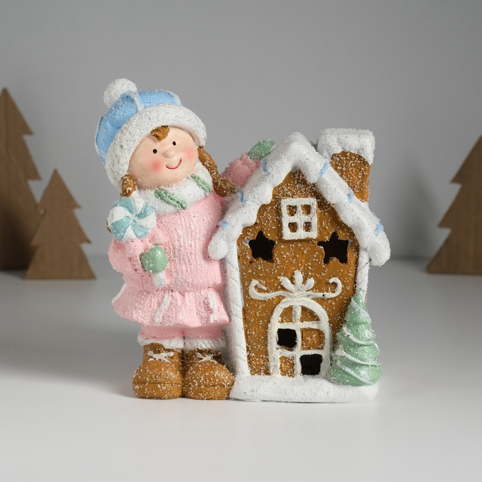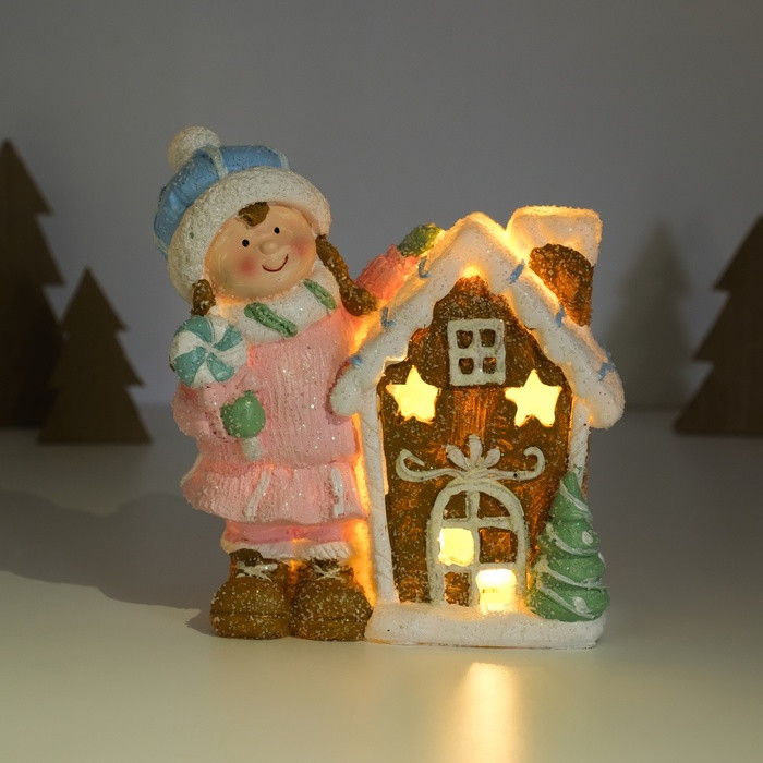 Фигурка светящаяся «Малышка в розовом наряде у пряничного домика»новинка -25%