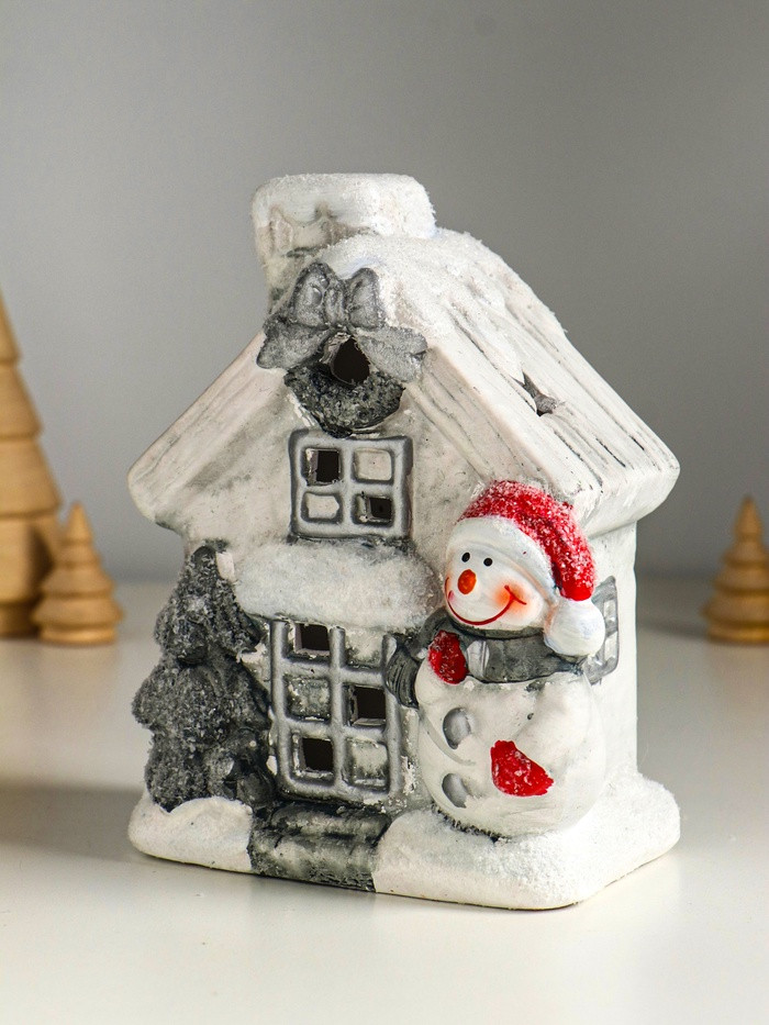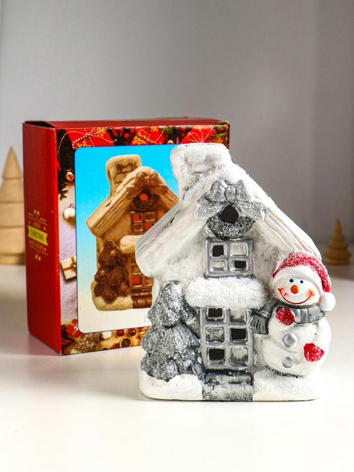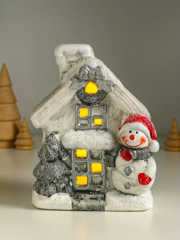 Фигурка светящаяся «Снеговичок у домика»новинка -25%