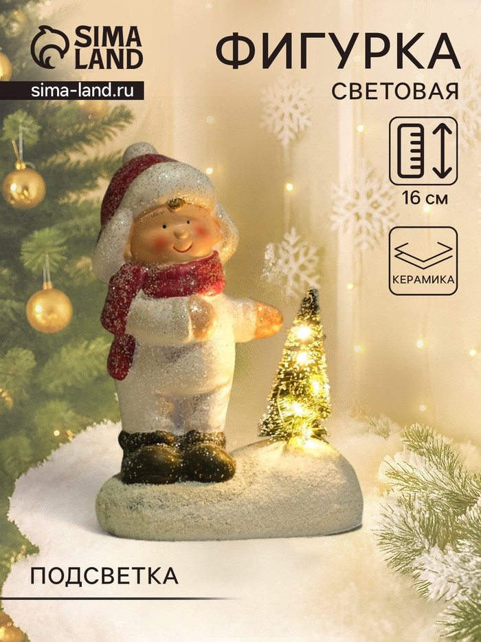 Фигурка светящаяся «Малыш в белом комбинезоне у ёлочки»новинка -35%
