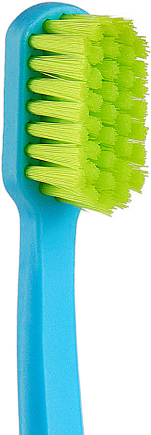 • стильный дизайн с голубой ручкой и салатовой щетиной;