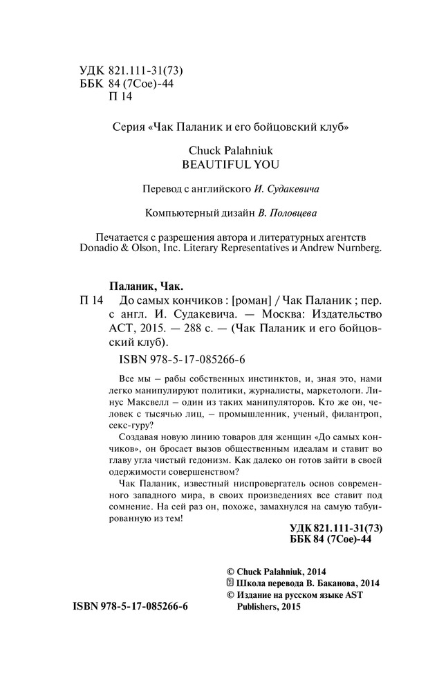 Паланик нравится очень. Манера написания и идея этой книги удивили. Качество этой серии мне нравится