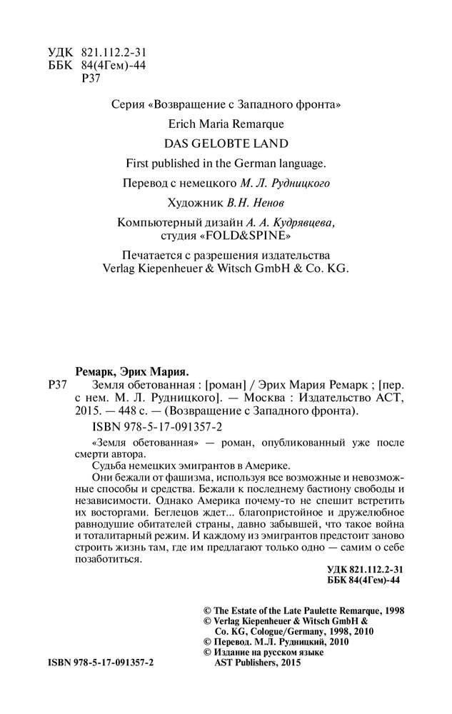 💳 Оплатить за товар можно при получении 🇰🇿 Есть бесплатная доставка по Казахстану 🎁 Копите бонусы с каждой покупки Серия: Возвращение с Западного фронта "Земля обетованная" — роман, опубликованный уже после смерти автора. |