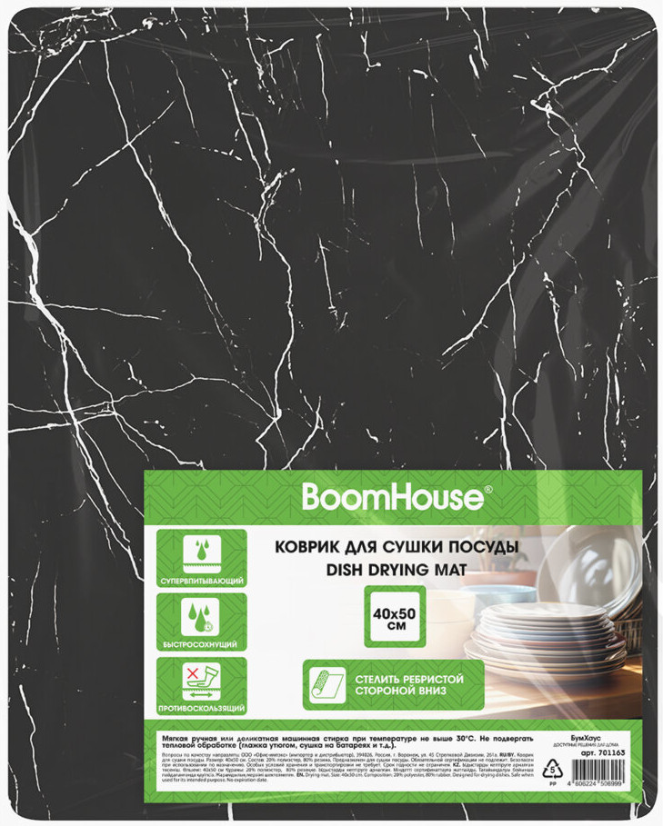 Коврик для сушки посуды Boomhouse с диатомитовым слоем эффективно впитывает влагу и быстро сохнет, обеспечивая чистоту и порядок на кухне. Стильный и гигиеничный аксессуар идеально подойдёт для тех, кто заботится о собственном комфорте! Нано-коврик для сушки посуды Boomhouse — это современное гигиеничное решение для кухни, объединяющее в себе высокую функциональность и инновационные материалы. |