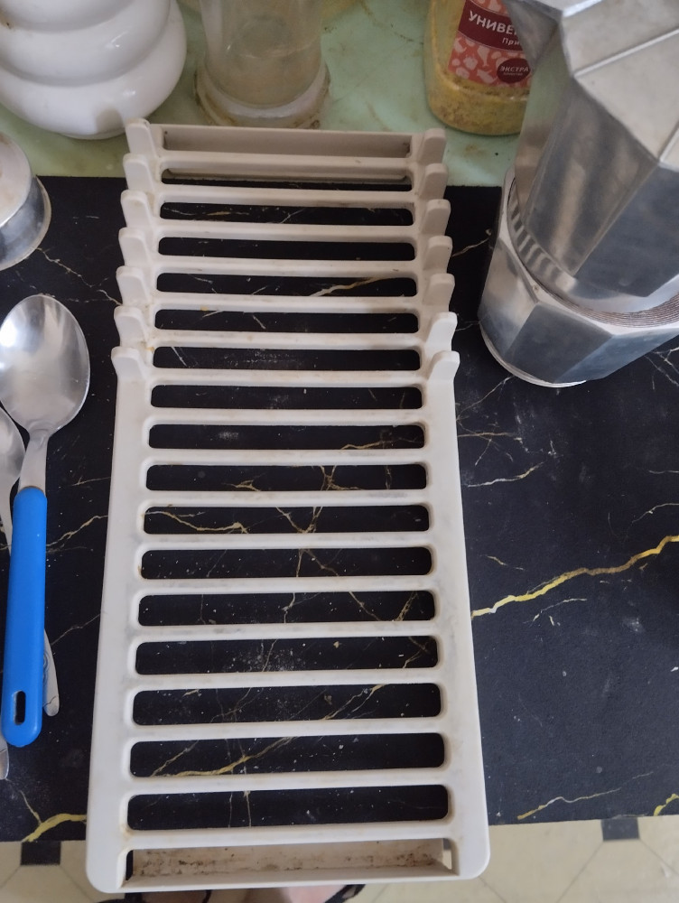 Отличный коврик для посуды, довольно плотный, красивый. Сохнет быстро, он меньше, чем предыдущий. Рекомендую к приобретению.