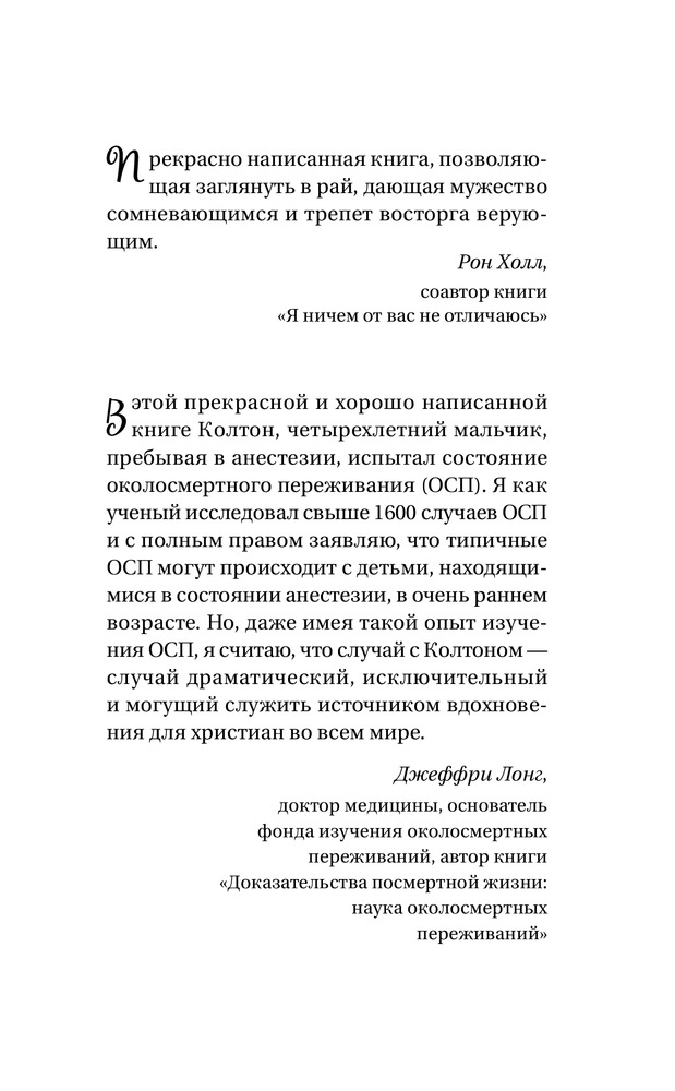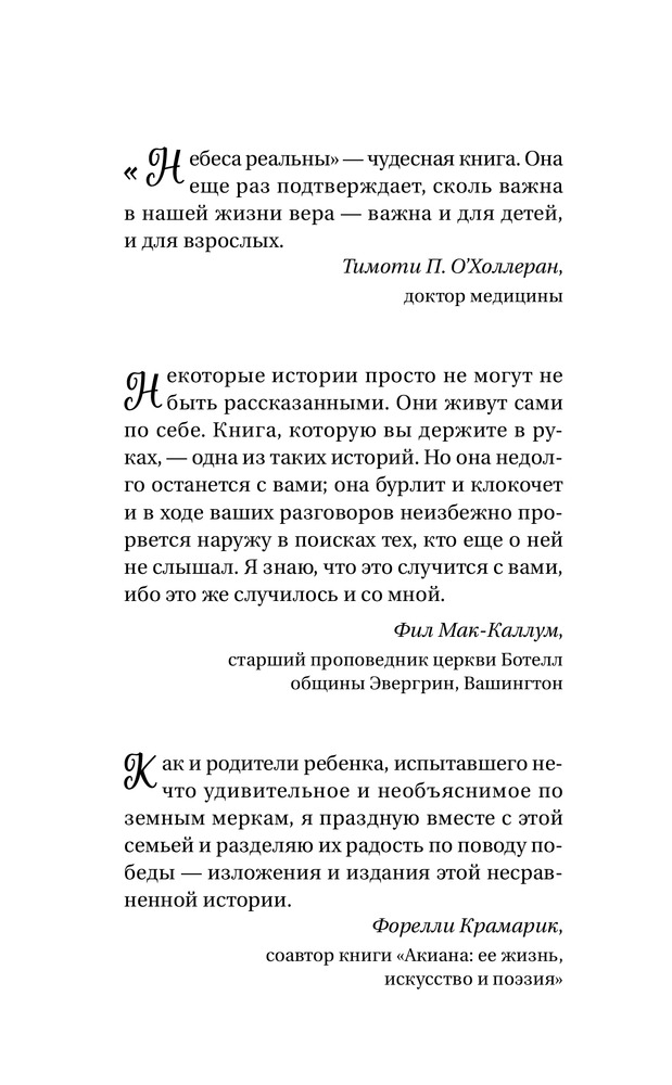 Небеса реальны! Поразительная история путешествия маленького мальчика на небеса и обратноВ данный момент этот товар отсутствует в продаже. Возможно, у нас найдется аналогичный или похожий товар здесь. Серия: Нектар для души Эта невероятная история уже завоевала весь мир. О ней пишут в журналах, ее обсуждают на ток-шоу, о ней снимают фильм в Голливуде! Тираж этой книги — уже несколько миллионов экземпляров! |
