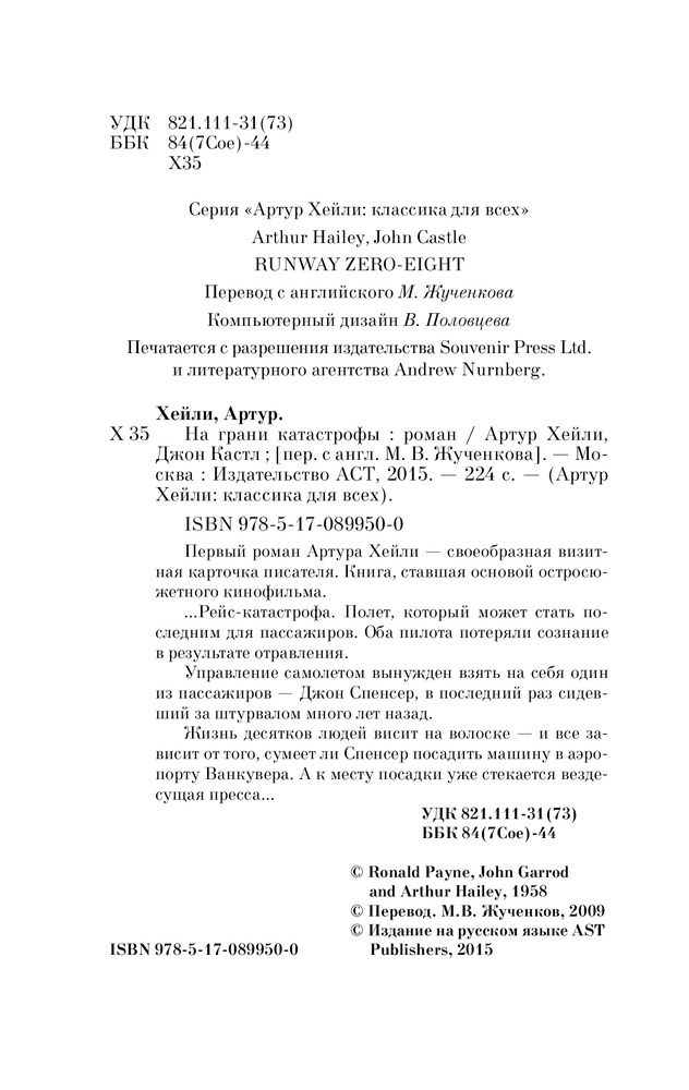 На грани катастрофыВ данный момент этот товар отсутствует в продаже. Возможно, у нас найдется аналогичный или похожий товар здесь. Серия: Артур Хейли. Классика для всех Первый роман Артура Хейли – своеобразная визитная карточка писателя. Книга, ставшая основой остросюжетного кинофильма. |