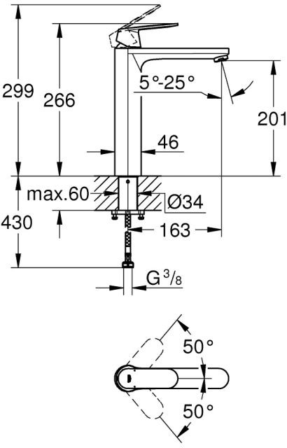 • Grohe Water Saving — ограничитель расхода воды 5,7 л/мин;