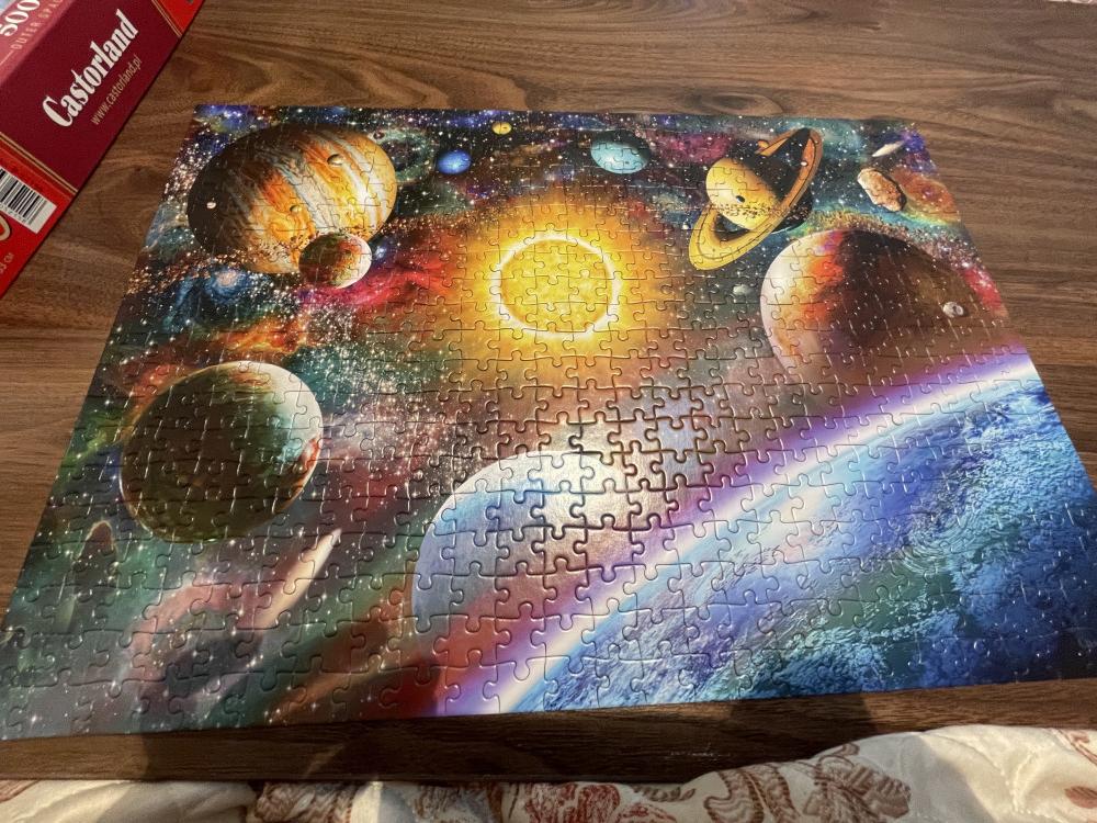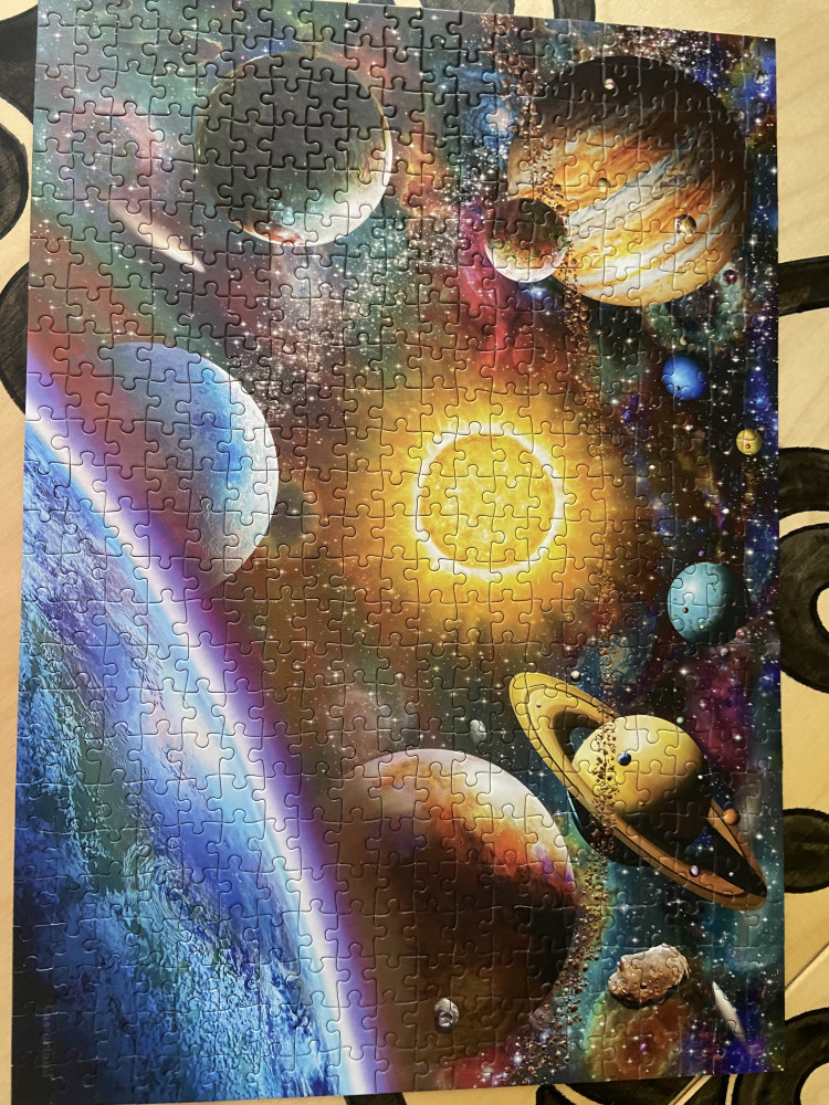 Пазл просто шикарный! Красочная картинка, элементы хорошо стыкуются между собой. Собирали втроём, по времени ушло около пяти часов. Детям очень понравилось его собирать, пазл не из лёгких ) Для детей 10 - 12 лет отличный подарок!