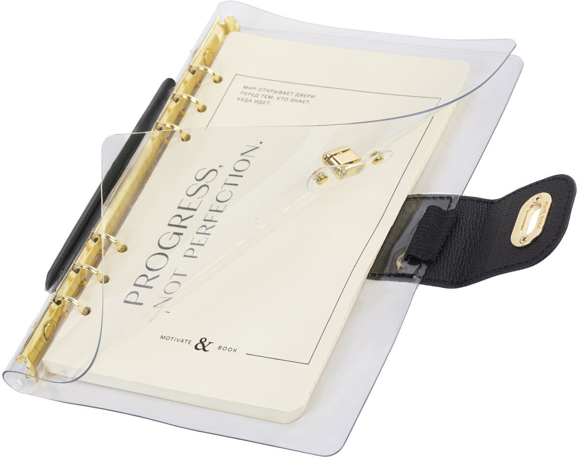 Бизнес-блокнот имеет гибкую прозрачную пластиковую обложку и золотистые детали, что придает ему стильный и оригинальный вид. Имеет закругленные уголки. 80 листов позволят зафиксировать большой объем информации. Линовка блока в клетку (5×5 мм) дает возможность аккуратно заполнить цифровые значения, а также нанести чертежные зарисовки. Внутренний блок выполнен из офсета кремового цвета плотностью 70 г/м2. |