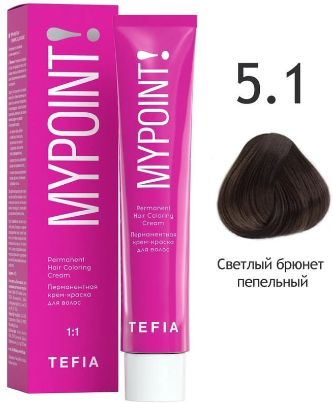 Tefia Крем-краска для волос, оттенок 5.1 Светлый брюнет пепельный