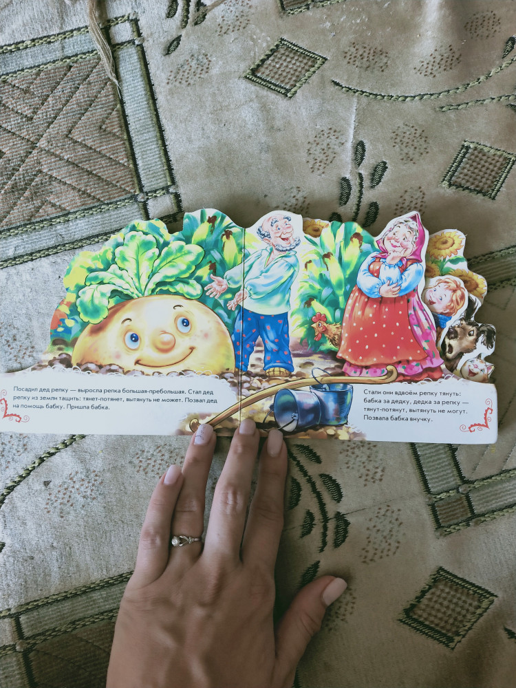 Книжка очень хорошая. Яркая, красочная из плотного картона, хороша для маленьких ручек ( доче 1годик)