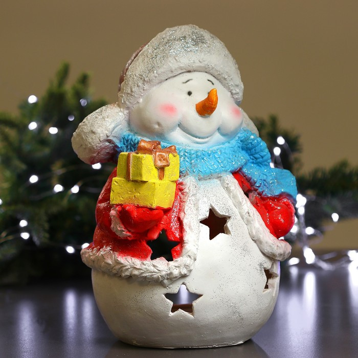Хорошие сувениры Фигурка-подсвечник «Снеговик с подарками»новинка -35%