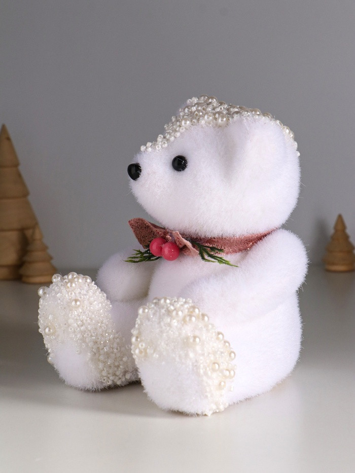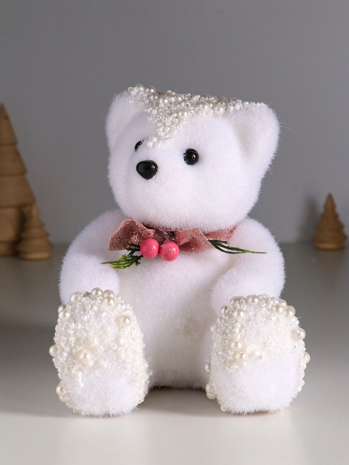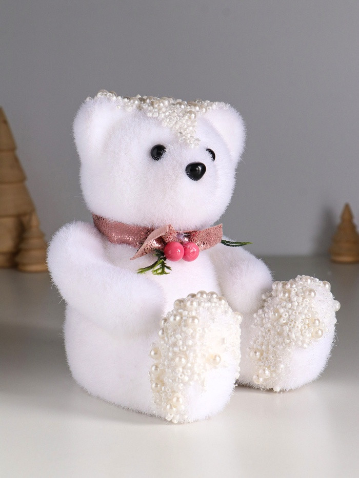 Фигурка «Белый медвежонок с еловым бантом, в бусинках» - Фото 1Фигурка «Белый медвежонок с еловым бантом, в бусинках» - Фото 2Фигурка «Белый медвежонок с еловым бантом, в бусинках» - Фото 3