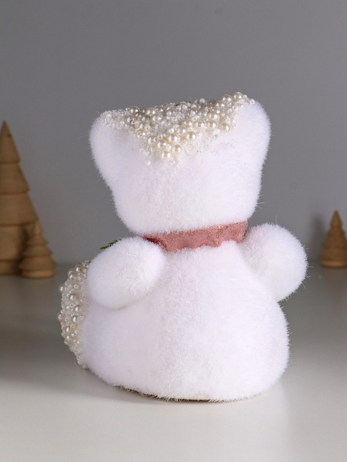 Фигурка «Белый медвежонок с еловым бантом, в бусинках»