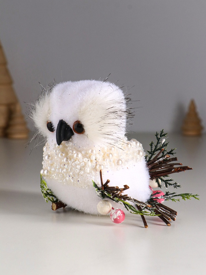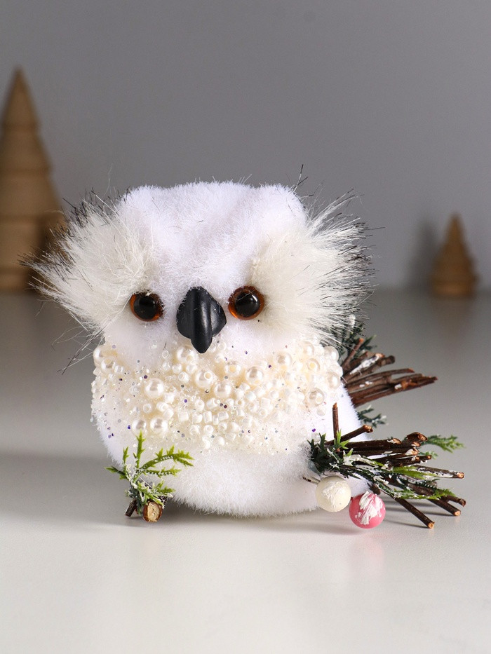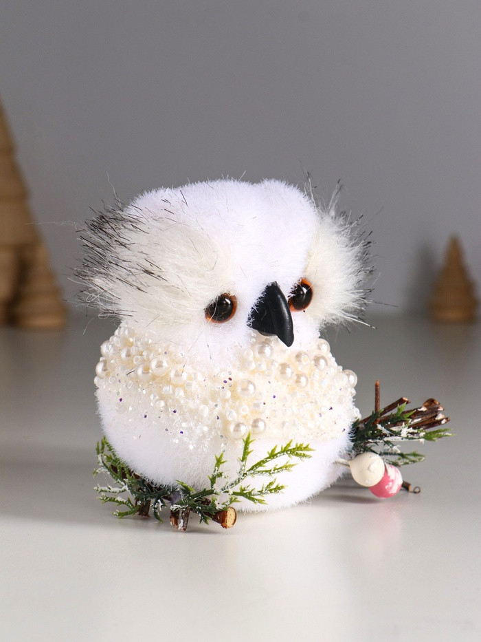 Фигурка «Белый совёнок с бусинками»новинка -25%