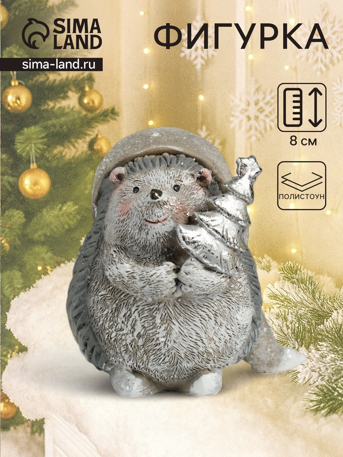 Фигурка «Ёжик с серебристой ёлочкой в длинном колпаке»новинка -25%
