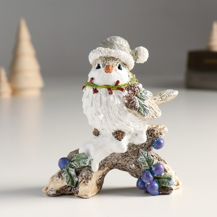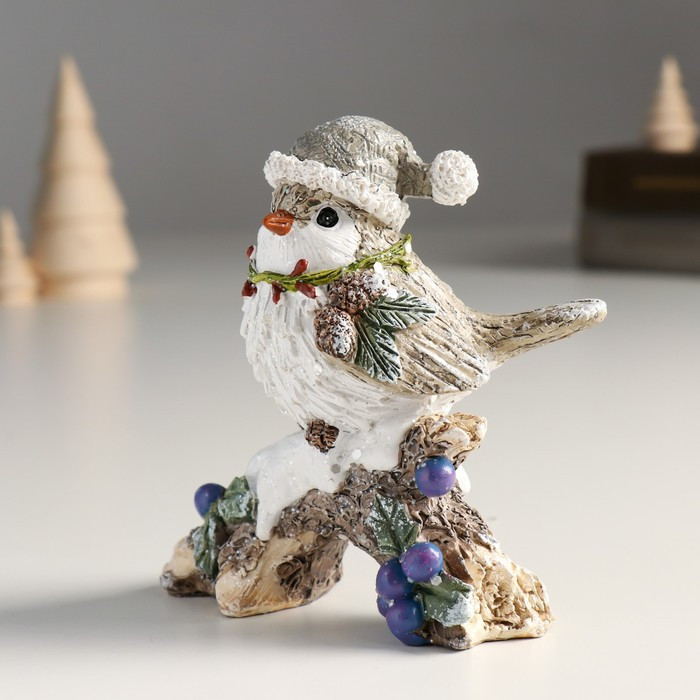 Фигурка «Новогодний воробышек в колпаке на коряге с ягодками»новинка -25%