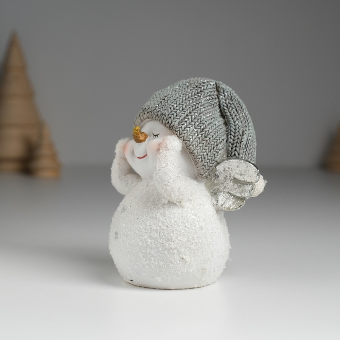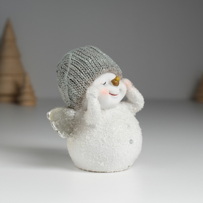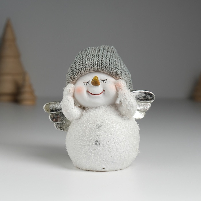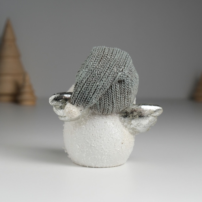 Фигурка «Снеговик белый с серебристыми крыльями в вязанном колпаке»новинка -25%