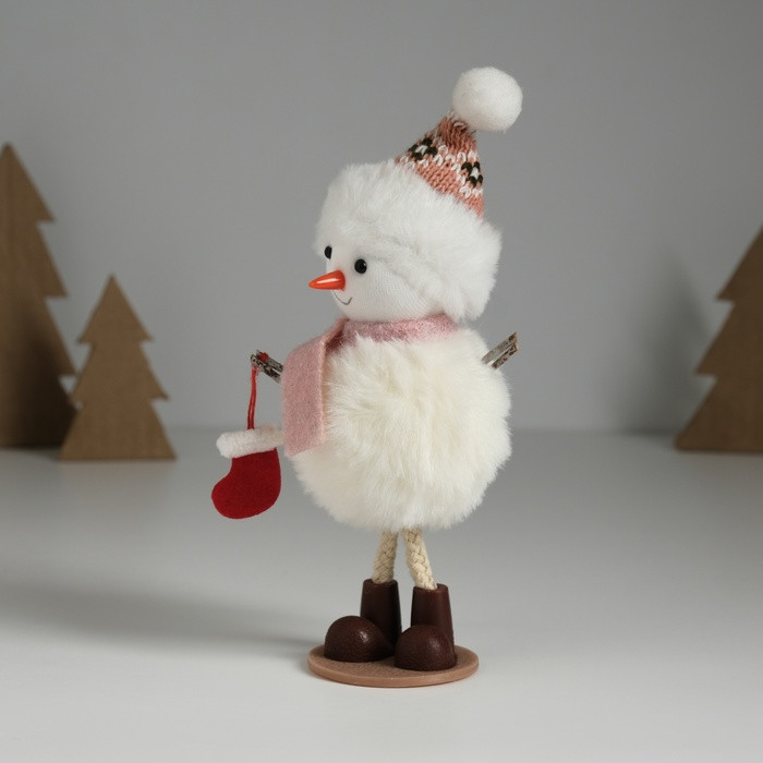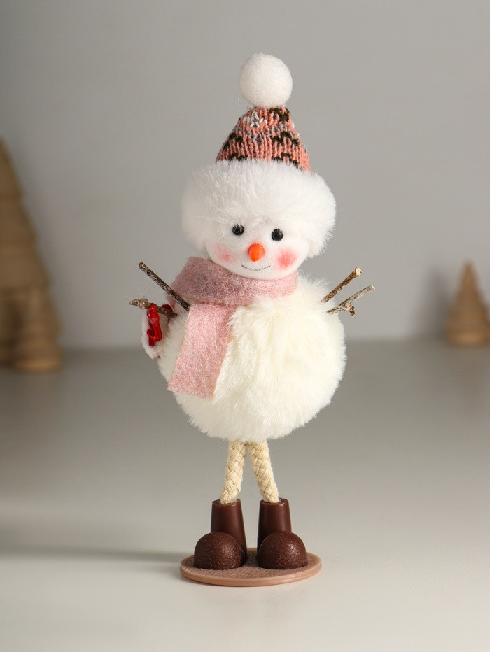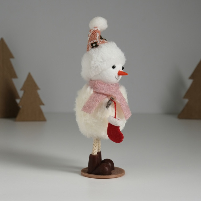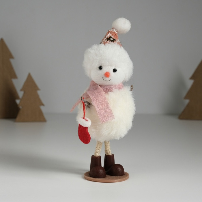Фигурка «Снеговик в розовом шарфике, с носочком»новинка -25%
