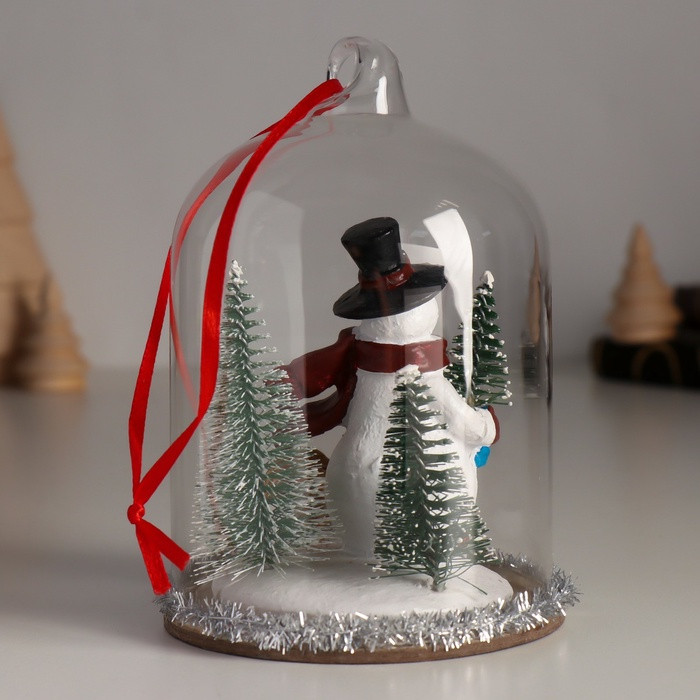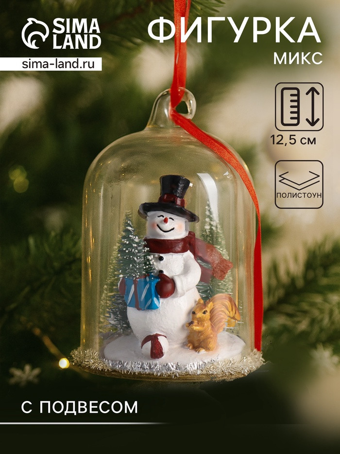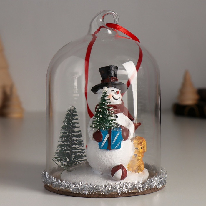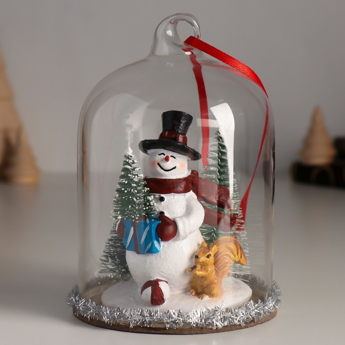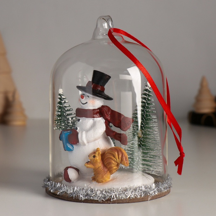 Фигурка-подвеска «Снеговик с ёлкой, белкой и подарками под куполом»новинка -35%