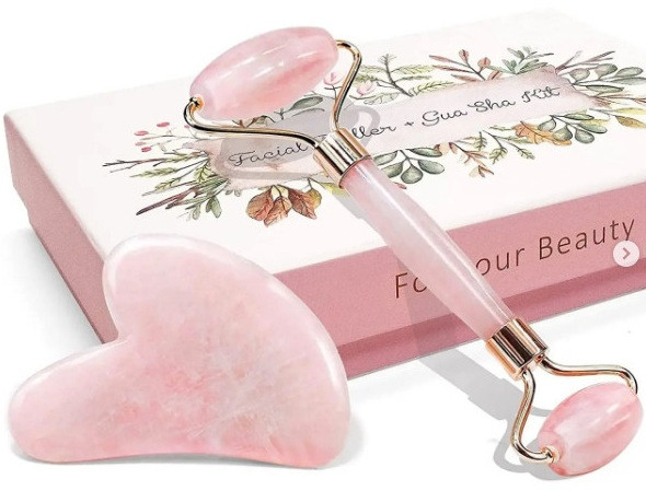 | Кварцевый скребок и двусторонний роллер для массажа лица+85 (бонусов)