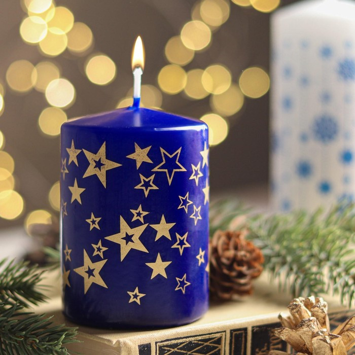 Свеча-цилиндр с узорами «Звезды»