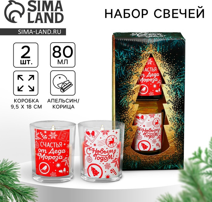 Sima-Land Home Набор свечей ароматических в стакане «Новый год. Счастья от Деда Мороза»