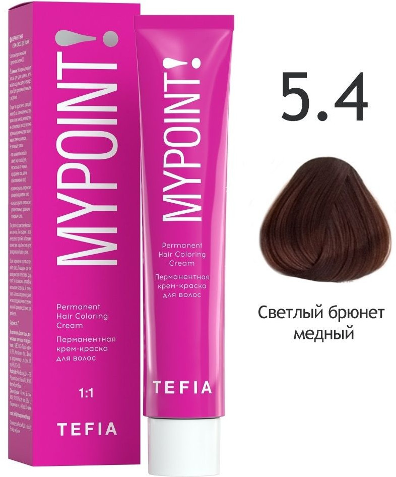 Tefia Крем-краска для волос, оттенок 5.4 Светлый брюнет медный