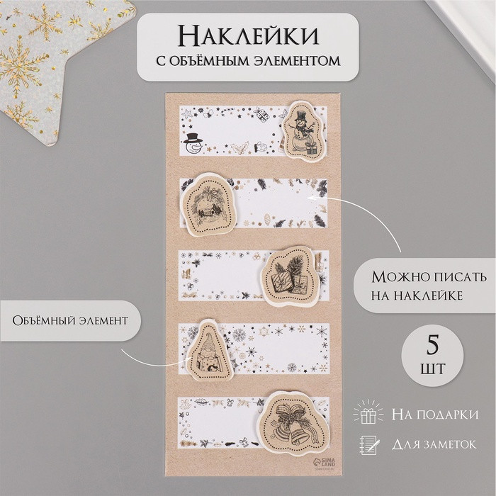 Арт Узор Набор наклеек с объёмным элементом «Снеговик и ели»новинка -25%
