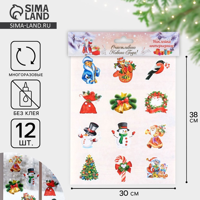 Дарим Красиво Набор наклеек на окна «Новогодние»новинка -35%