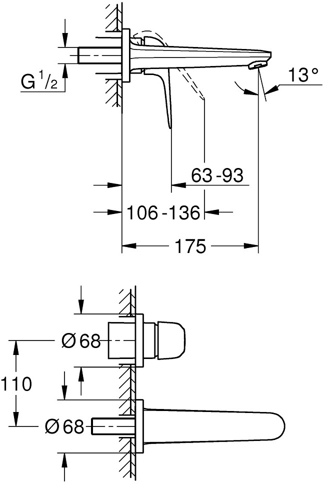 • керамический картридж — оснащён керамическим картриджем Grohe SilkMove, обеспечивающим плавное и точное управление температурой и напором воды;
