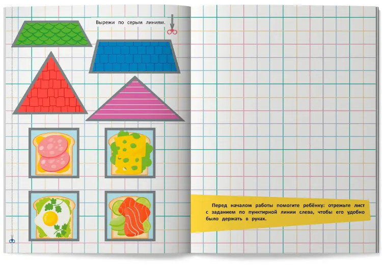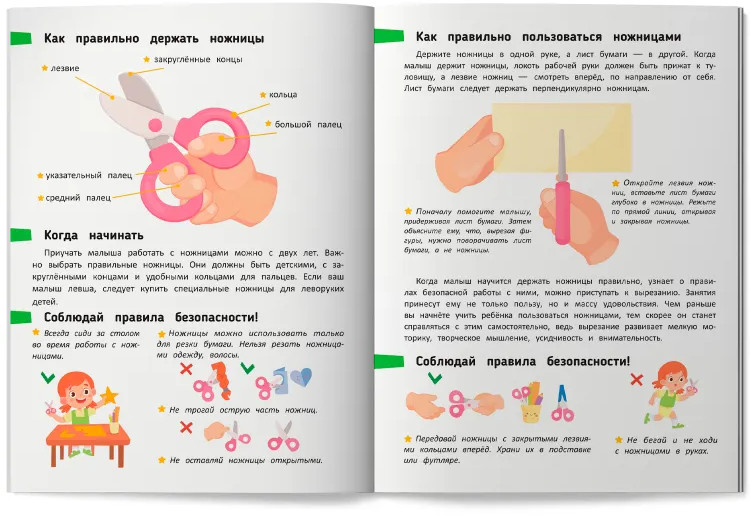 Серия: Ножницы! Бумага! Клей! Умение пользоваться ножницами — необходимый навык для малышей. С помощью этого пособия по вырезанию ребята сначала научатся резать по прямым и изогнутым линиям, а затем перейдут к геометрическим фигурам и весёлым рисункам. Задания строятся по принципу «от простого к сложному», чтобы малыш постепенно научился пользоваться ножницами. Забавные герои и яркие иллюстрации сделают процесс увлекательным. |