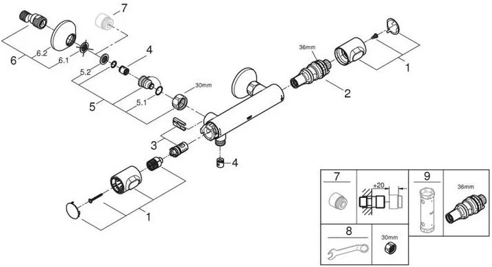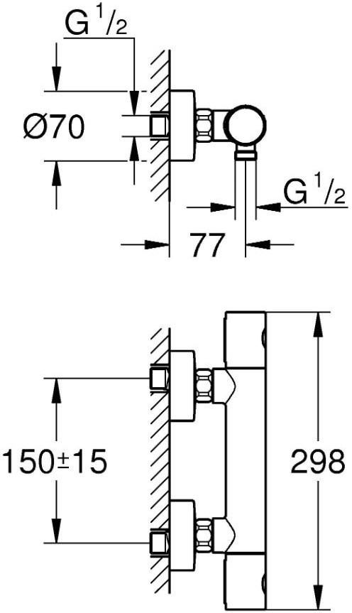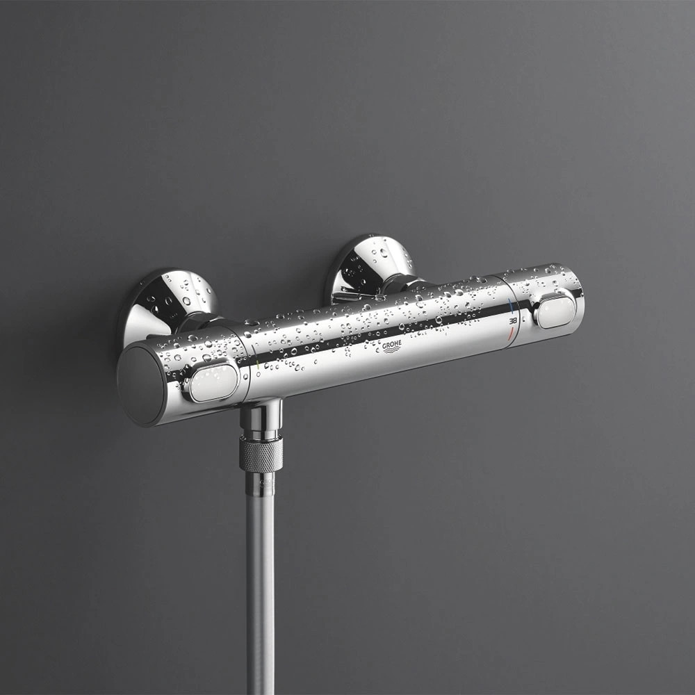 Термостат для душа Grohe Grohtherm 500 — это воплощение современного дизайна и передовых технологий, обеспечивающее комфорт и безопасность при принятии душа. В комплект входят смеситель, эксцентрики и отражатели. Изделие выполнено из высококачественной латуни. Смеситель предназначен для настенного монтажа и требует два отверстия для установки. Отвод для душа расположен снизу (1/2 дюйма) и оснащен встроенным обратным клапаном. Устройство также имеет ограничитель температуры, обеспечивающий безопасное использование, и защиту от обратного потока воды.