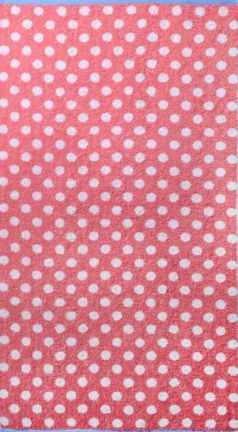 На фото цвет ярче, как это часто бывает. В жизни цвет приглушеннее, с обратной стороны - цветные горошины по белому полю, подбито полотенце полосой голубого цвета. Сшито очень хорошо, в меру плотненькое, не разочарована.