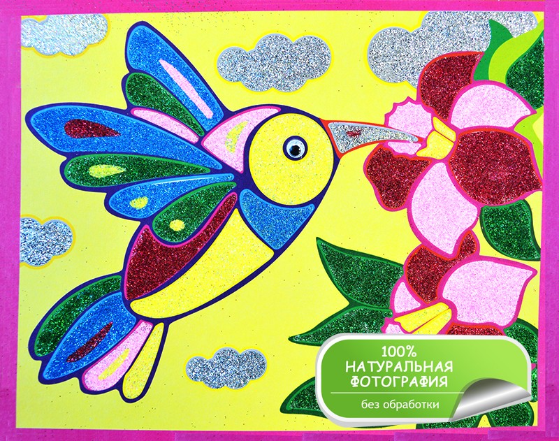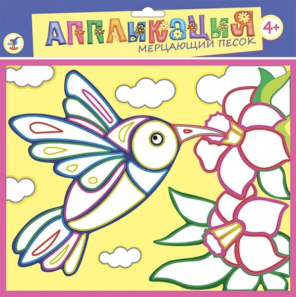 В данный момент этот товар отсутствует в продаже. Возможно, у нас найдется аналогичный или похожий товар здесь. Серия: Аппликация. Мерцающий песок Набор для творчества «Мерцающий песок» - это необычная раскраска-аппликация, где вместо красок, карандашей или других классических материалов используется сыпучий материал - блестящий полимерный песок. Материал совершенно безопасен для детей и отлично подходит для «раскрашивания» картинок. Для работы вам не понадобятся клей или другие дополнительные аксессуары: все, что нужно для работы, уже есть в наборе. Задача ребёнка - снять защитную пленку с одного из фрагментов рисунка, насыпать на липкий слой немного песка и равномерно распределить его кисточкой.