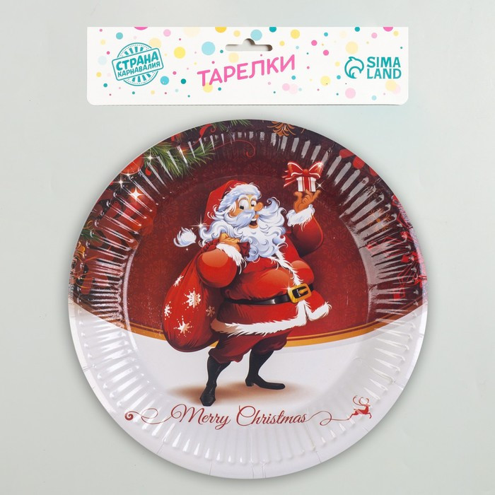 Страна Карнавалия Тарелка новогодняя бумажная «Дед Мороз с подарками»новинка -25%