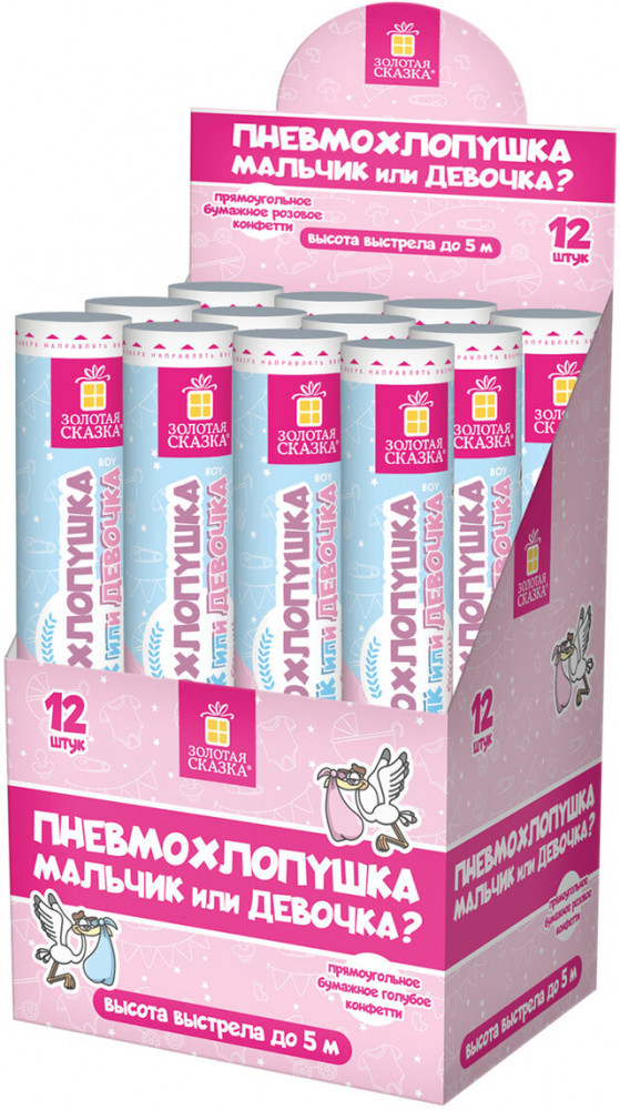 Золотая сказка Хлопушка пневматическая с розовым конфети «Мальчик или девочка»новинка