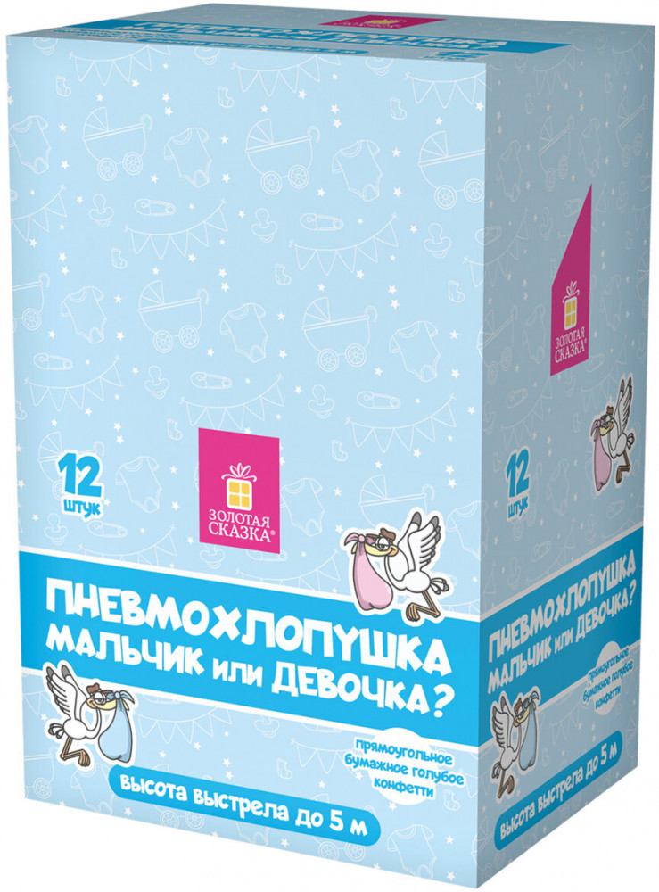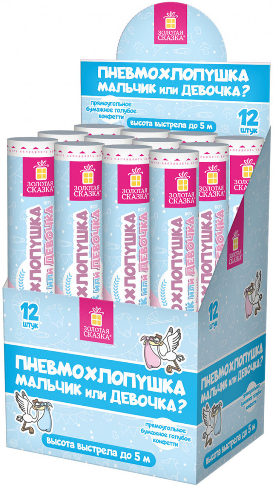 Золотая сказка Хлопушка пневматическая с голубым конфети «Мальчик или девочка»новинка -20%