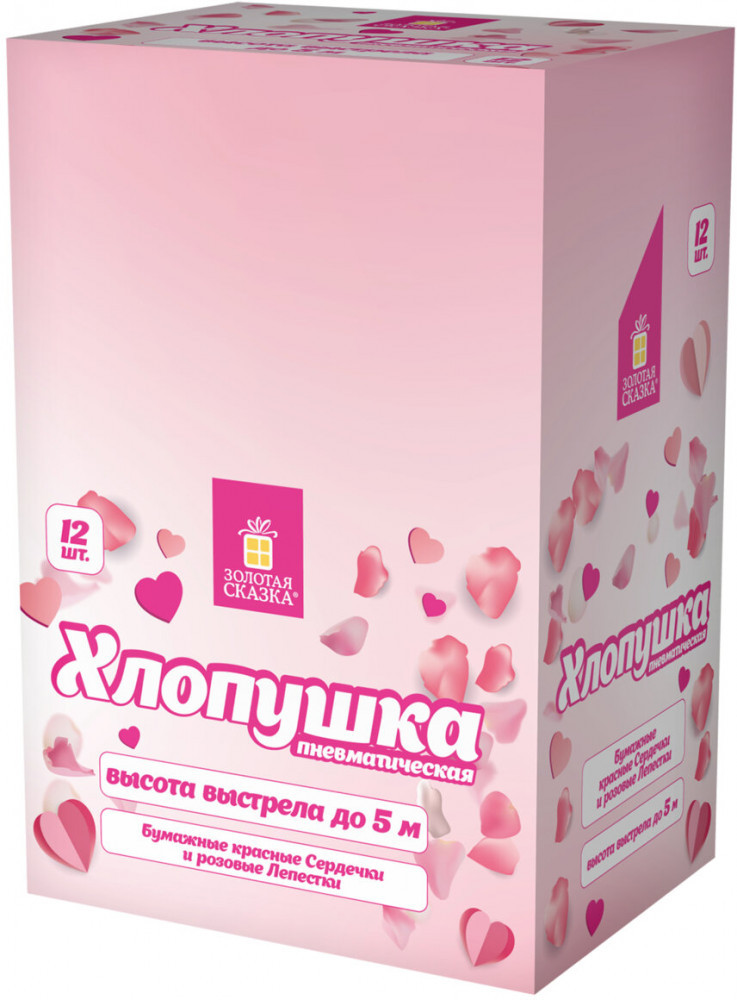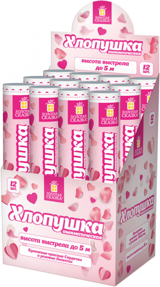 Золотая сказка Хлопушка пневматическая с конфети в форме сердец и лепестковновинка